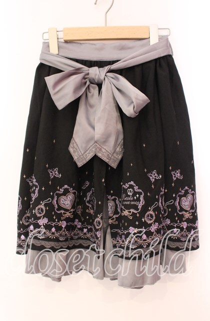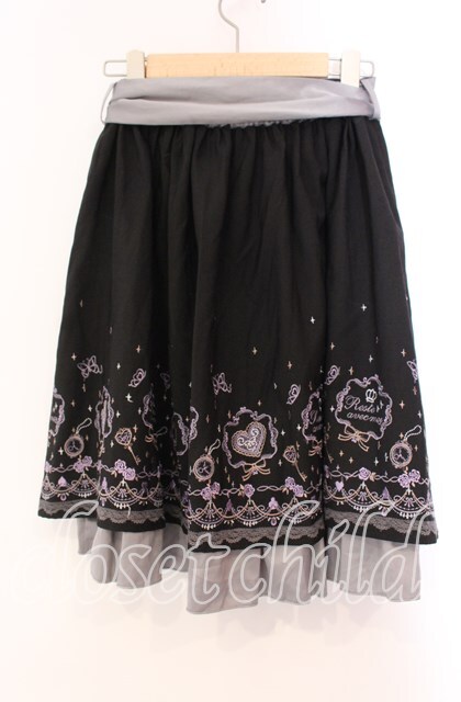 axes femme / メルヘン刺繍スカート グレー×クロ O-25-11-17-012-AX-SK-IG-OS