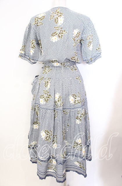 WONDERFUL WORLD / チェックフラワーたくし上げワンピース シロ×ネイビー O-25-11-17-038-LO-OP-IG-OS [2100080000056417-O-25-11-17-038-LO-OP-IG-OS]