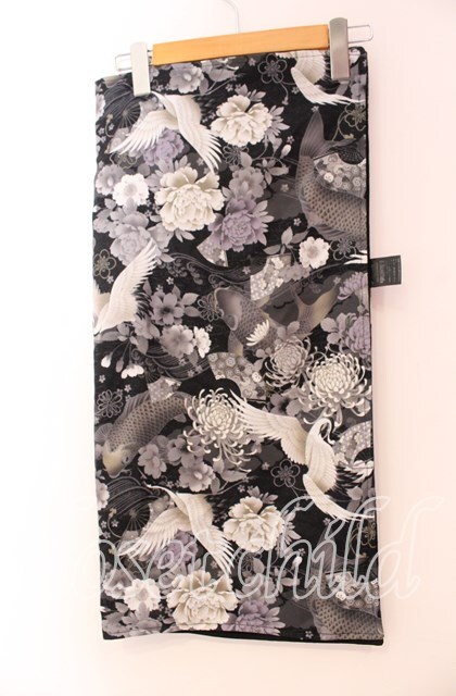 Qutie Frash / 2022浴衣4点SET 風呂敷単品 蓮ブラック O-25-11-17-066-QU-ZA-IG-OS