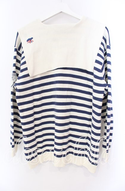 KETTY / 帽子ブローチボーダーセーラーカーディガン アイボリー×ネイビー O-25-11-17-017-EL-TO-IG-OS