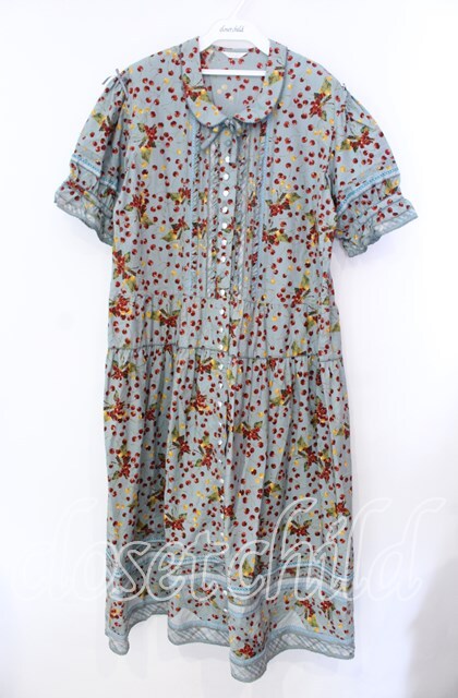 PINK HOUSE / チェリープリント裾ギンガムワンピース【お直しあり】 ミント O-25-11-17-029-LO-OP-IG-OS