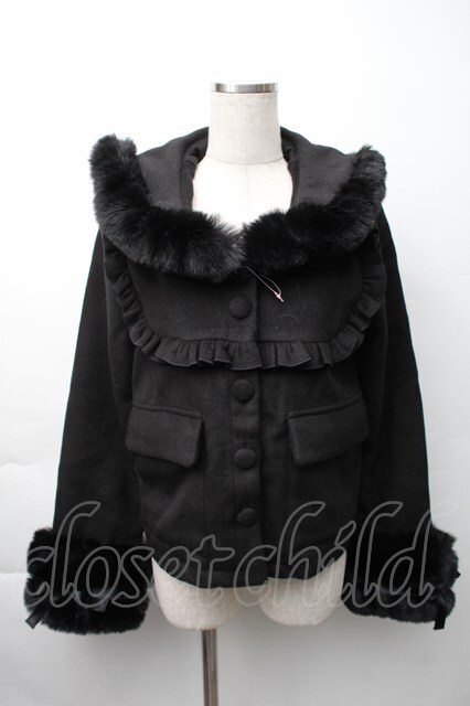 MA*RS / サイド編み下げ&ファースクエア衿ショートコート 黒 S-25-11-16-028-EL-CO-AS-ZS [2100020000031910-S-25-11-16-028-EL-CO-AS-ZS]