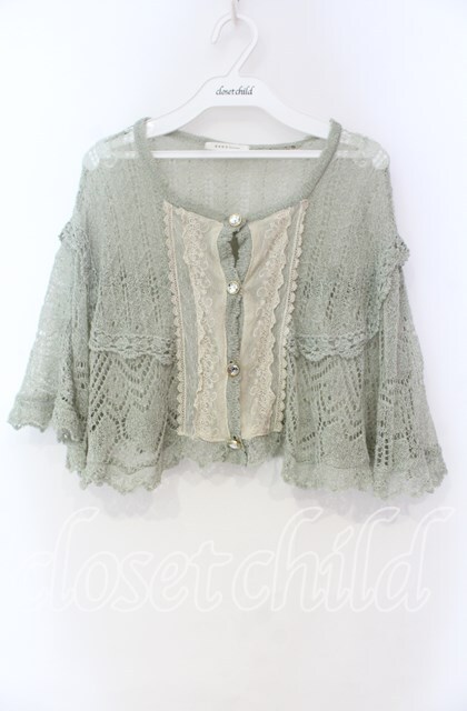 axes femme / 透かし編みケープ ライトグリーン O-25-11-18-093-AX-TO-IG-OS
