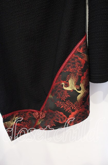 Qutie Frash / 2023年プレミアム 宵鶴着物チュニック ブラック×レッド O-25-11-18-035-QU-TO-IG-OS
