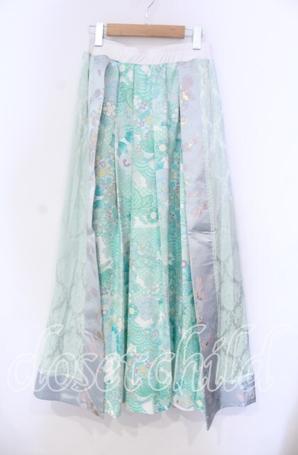Qutie Frash / 和柄プリーツロンスカ ミントグリーン O-25-11-18-062-QU-SK-OW-OS [2100080000064284-O-25-11-18-062-QU-SK-OW-OS]