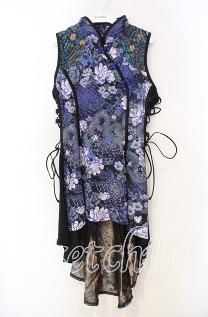 Qutie Frash / 和柄チャイナワンピ ブルー O-25-11-18-058-QU-OP-OW-OS