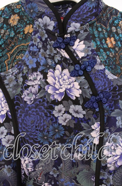 Qutie Frash / 和柄チャイナワンピ ブルー O-25-11-18-058-QU-OP-OW-OS [2100080000064277-O-25-11-18-058-QU-OP-OW-OS]