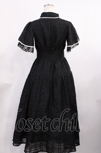 An MILLE / シアーチェックフリルワンピース Free ブラック H-25-11-23-1008-EL-OP-NS-ZH