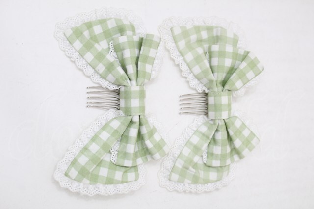 metamorphose / ギンガムレースリボンコーム グリーンx白 S-25-11-18-009-ME-ZA-HR-ZS