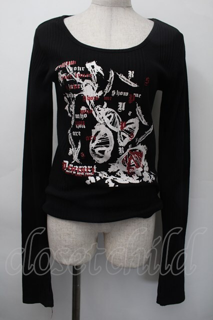 Deorart / プリントリブカットソー 黒 S-25-11-18-029-PU-TO-HR-ZS