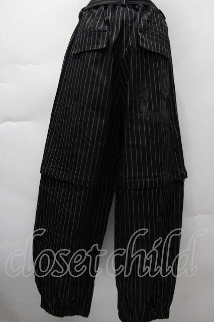 NieR Clothing / ベルト付きストライプパンツ 黒 S-25-11-18-059-PU-PA-HR-ZS