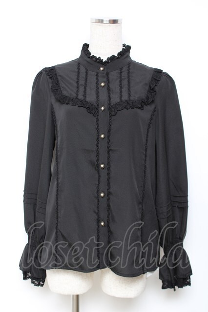 axes femme kawaii / タッセルリボンタイブラウス M 黒 Y-25-11-22-050-AX-BL-SZ-ZY