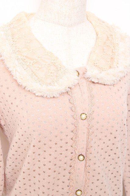 axes femme / 襟ファー付きドットカーデ M 淡ピンク Y-25-11-22-068-AX-TO-SZ-ZY