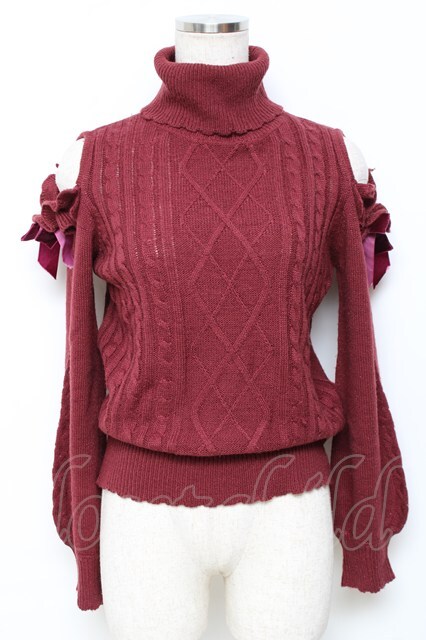 axes femme POETIQUE / ラメニットオフショルハイネックニット M ワイン Y-25-11-22-069-AX-TO-SZ-ZY