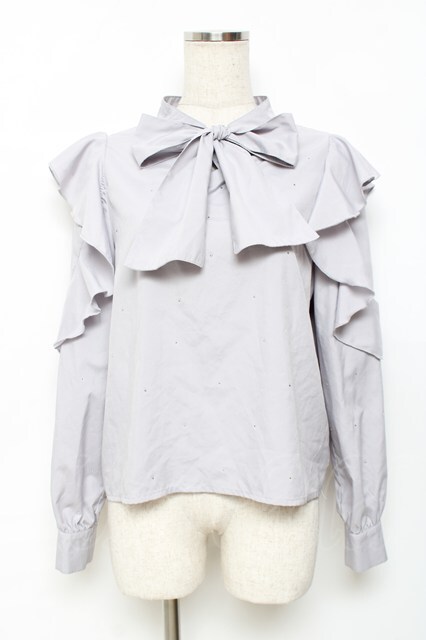 evelyn / ラインストーンリボンブラウス グレー Y-25-11-22-094-LO-BL-SZ-ZY [2100070000054646-Y-25-11-22-094-LO-BL-SZ-ZY]