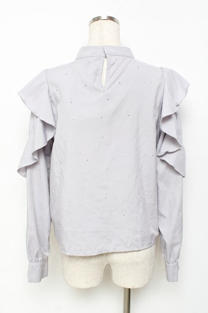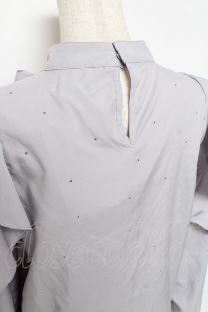 evelyn / ラインストーンリボンブラウス グレー Y-25-11-22-094-LO-BL-SZ-ZY