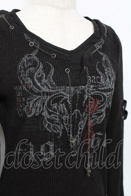 Ozz Croce / ゴートスカルptチェーン通しテレコトップス 黒 Y-25-11-22-103-OO-TO-SZ-ZY