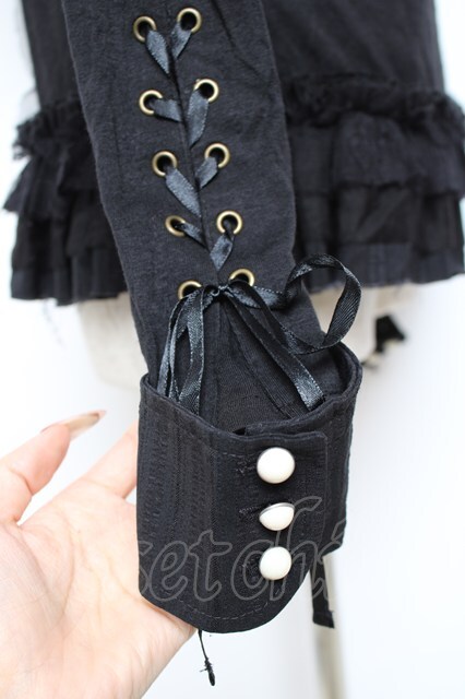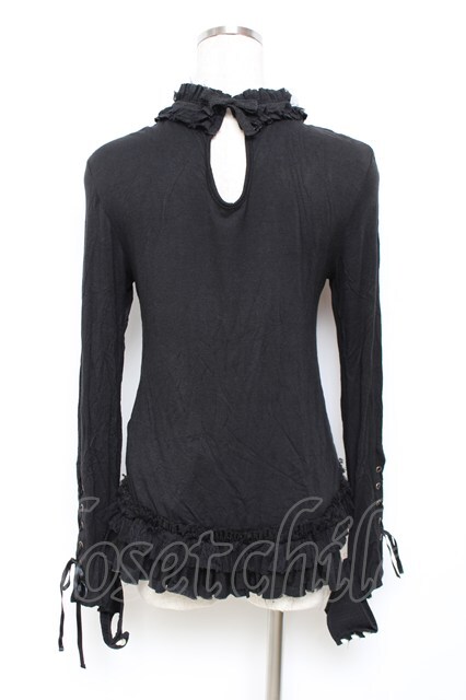 GRAMM / スタンドカラーレースジャボ風カットソー 黒 Y-25-11-22-106-HN-TO-SZ-ZY