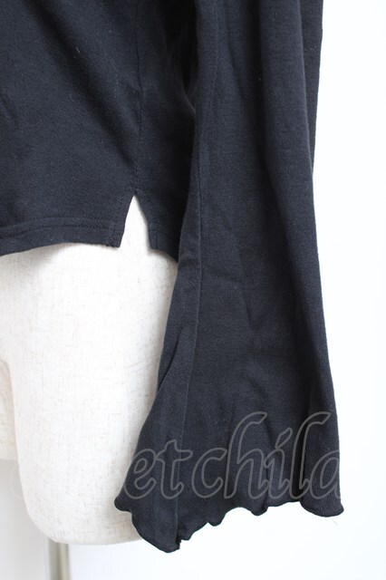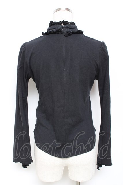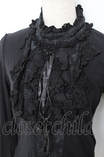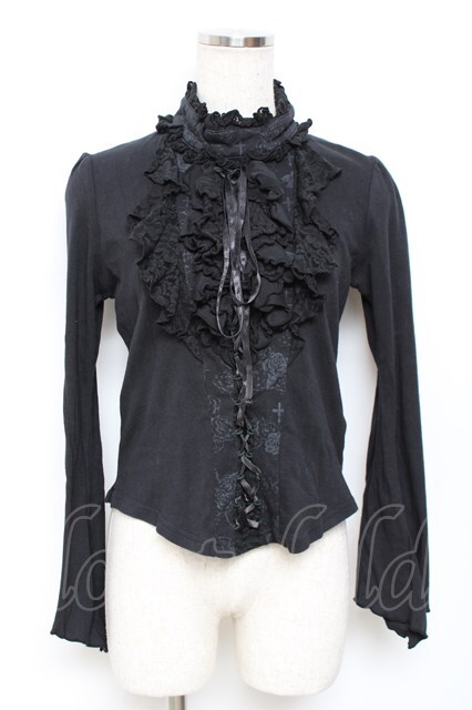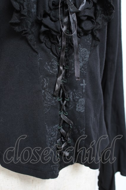 h.naoto Blood / プリント入編み上げフリルカットソー 黒 Y-25-11-22-108-HN-TO-SZ-ZY