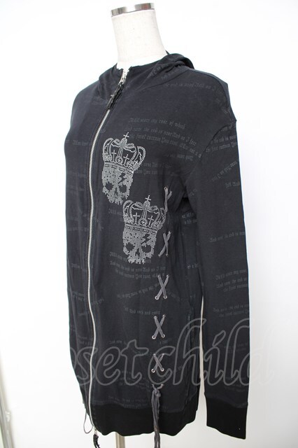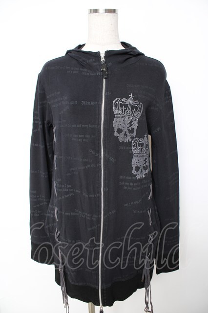 h.ANARCHY / プリント入レースアップZIPパーカー 黒 Y-25-11-22-111-HN-TO-SZ-ZY