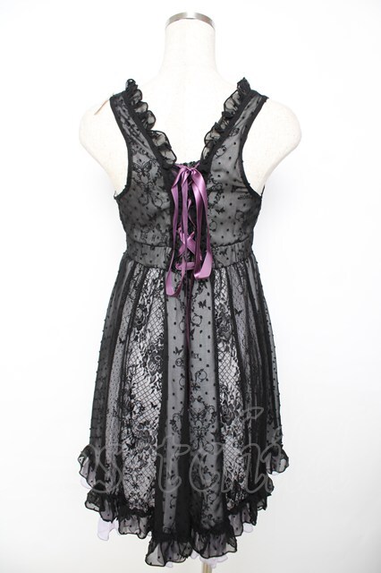 HONEY / ドットシフォン重ねバタフライptワンピース 黒×ラベンダー Y-25-11-22-115-HN-OP-SZ-ZY