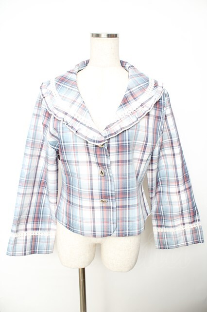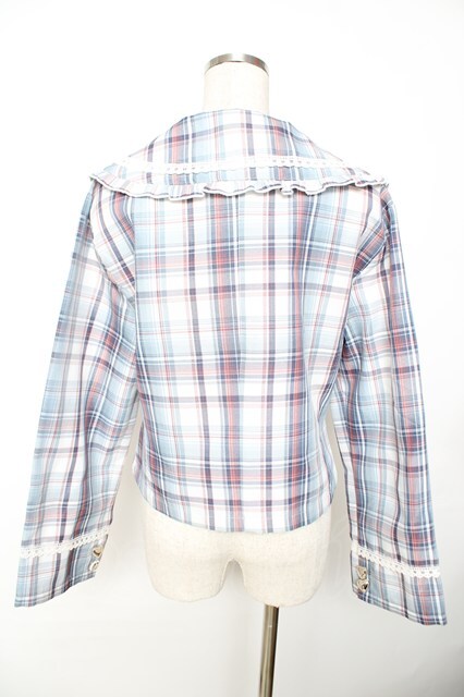 Virally / 星名桜子 チェックフリルジャケット LL サックス Y-25-11-22-125-LO-JA-SZ-ZY