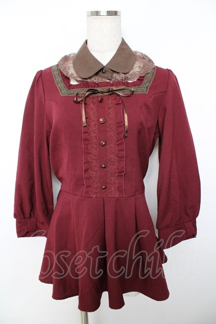 axes femme / 襟付きビスチェブラウス M ワイン Y-25-11-22-142-AX-BL-SZ-ZY