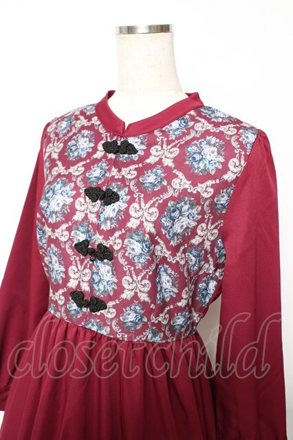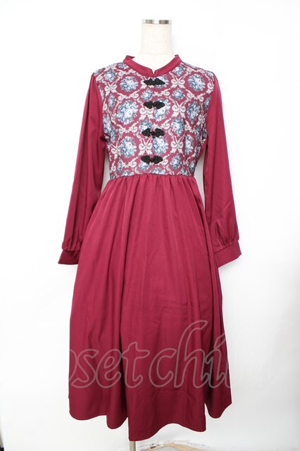 axes femme / チャイナ釦薔薇柄切替ワンピース F 赤 Y-25-11-22-154-AX-OP-SZ-ZY