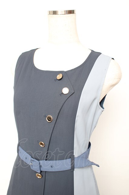 red yazel / ケープ付きバイカラーワンピース 紺 Y-25-11-22-205-LO-OP-SZ-ZY