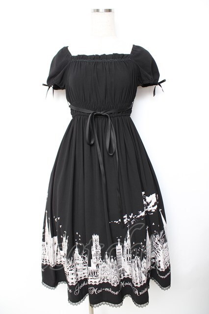 Moi-meme-Moitie / サイレントムーンワンピース(ミディアム丈) 黒×白 Y-25-11-22-206-MO-OP-SZ-ZY [2100070000054443-Y-25-11-22-206-MO-OP-SZ-ZY]