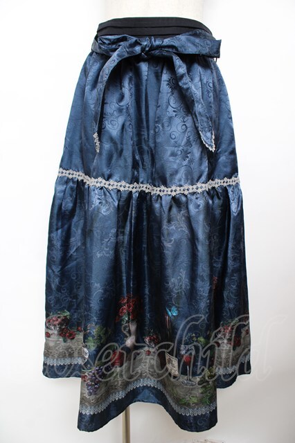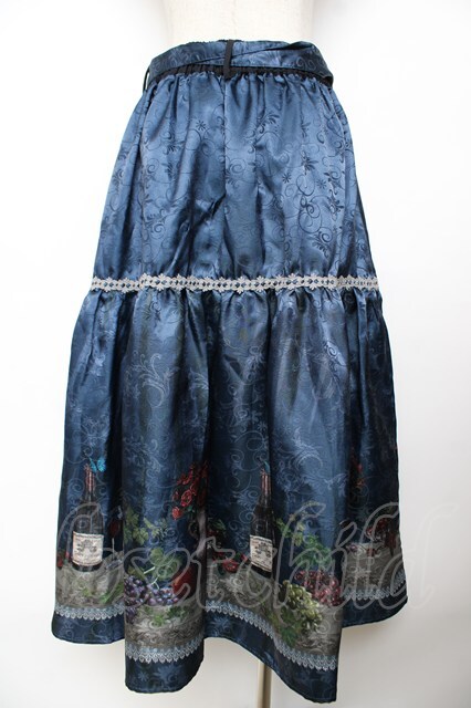 axes femme / ワイン柄スカート F 紺 Y-25-11-22-243-AX-SK-SZ-ZY