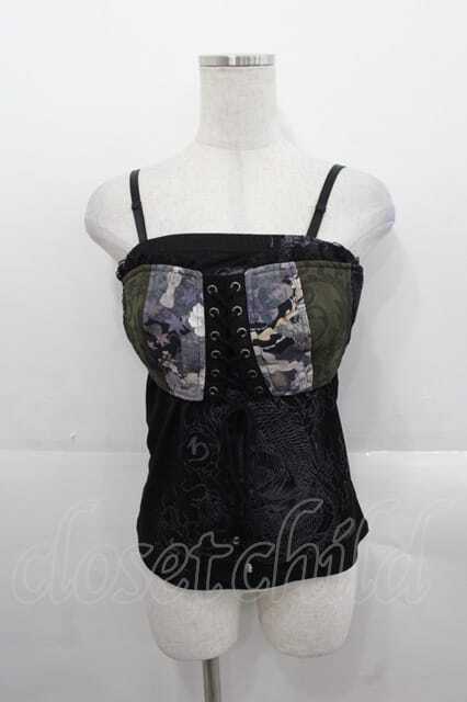 Qutie Frash / 龍プリントフロント編み下げキャミ 黒Xカーキ I-25-11-18-013-QU-TO-SA-ZI [2100060000045778-I-25-11-18-013-QU-TO-SA-ZI]