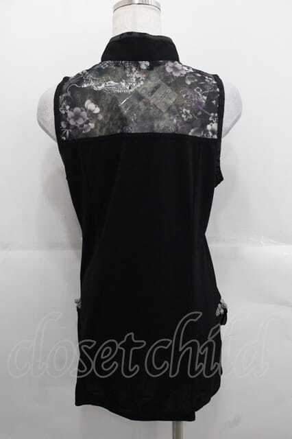 Qutie Frash / 和柄メッシュ切替チャイナノースリーブトップス 黒 I-25-11-18-014-QU-TO-SA-ZI [2100060000045750-I-25-11-18-014-QU-TO-SA-ZI]