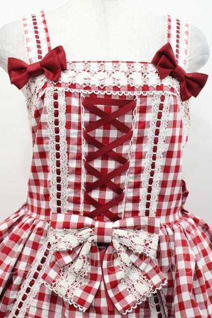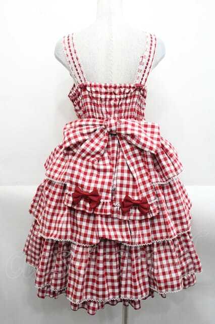 metamorphose / 3段フリルジャンパースカート(ギンガム) 赤X白チェック I-25-11-18-036-ME-OP-SA-ZI