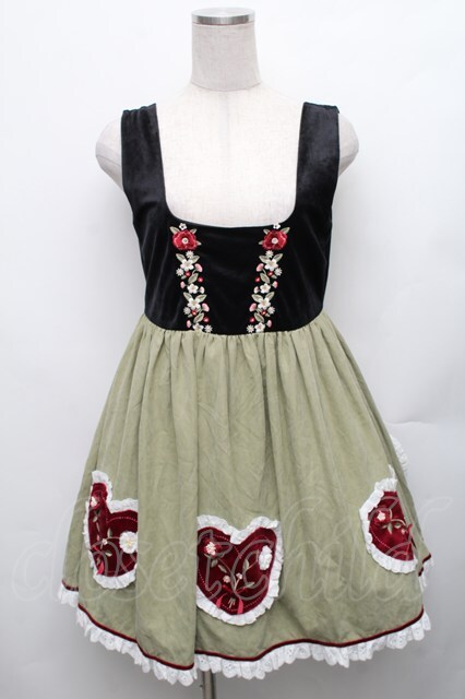 Pretty Rock Baby / ベロア切替ジャンパースカート S ブラック×グリーン S-26-01-23-037-LO-OP-SA-ZS [2100060000043689-S-26-01-23-037-LO-OP-SA-ZS]