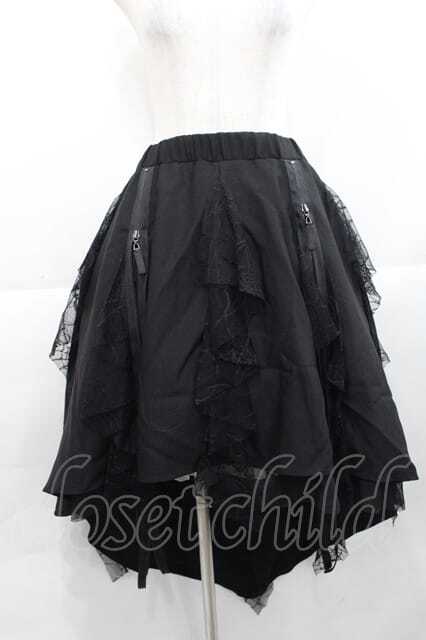 Qutie Frash / 龍プリントZIP蜘蛛の巣レーススカート 黒 I-25-11-18-073-QU-SK-SA-ZI [2100060000045776-I-25-11-18-073-QU-SK-SA-ZI]
