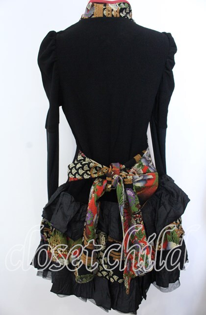 Qutie Frash / ちりめん和柄パフワンピース ブラック O-25-11-19-030-QU-OP-IG-OS [2100080000065232-O-25-11-19-030-QU-OP-IG-OS]