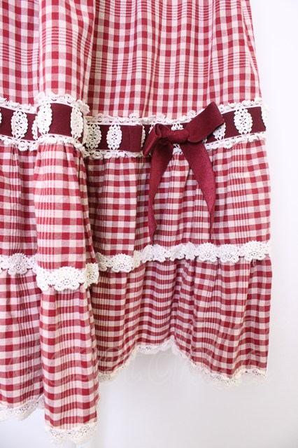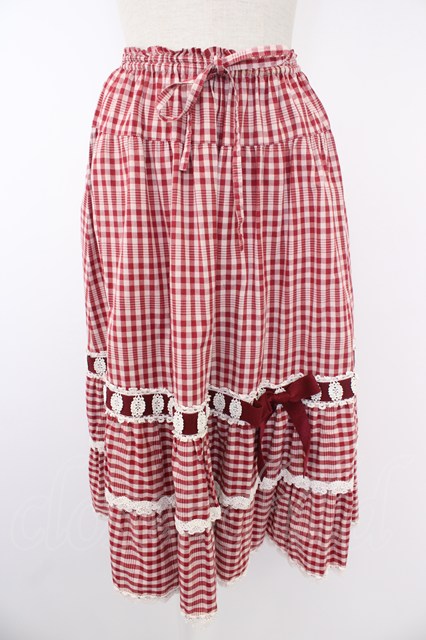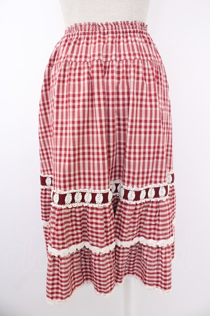PINK HOUSE / ハシゴレースギンガムチェックスカート レッド T-25-11-21-029-LO-SK-SA-ZT