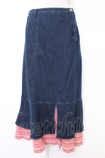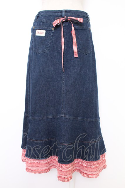 PINK HOUSE / ギンガムチェックフリルデニムスカート M インディゴ T-25-11-21-030-LO-SK-SA-ZT [2100060000038974-T-25-11-21-030-LO-SK-SA-ZT]