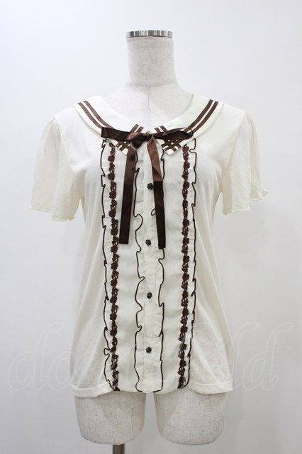 axes femme / バイカラーブラウス風プルオーバー M 生成り/ブラウン H-25-11-26-1058-AX-TO-NS-ZH [2100030000079102-H-25-11-26-1058-AX-TO-NS-ZH]