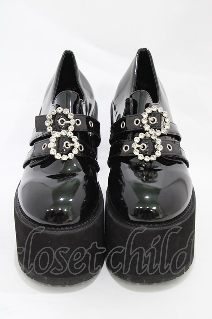 Bubbles / ダブルバックル厚底シューズ 41/25.0cm〜25.5cm ブラックエナメル H-25-11-26-1002-CA-SH-NS-ZH