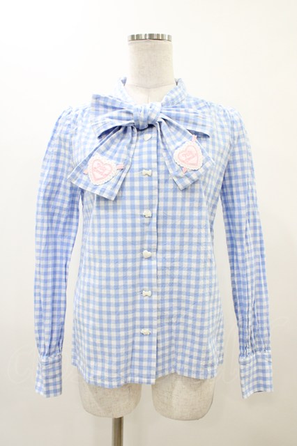 Nile Perch / ギンガムチェックリボンブラウス Free サックス H-25-11-26-1052-LO-BL-NS-ZH
