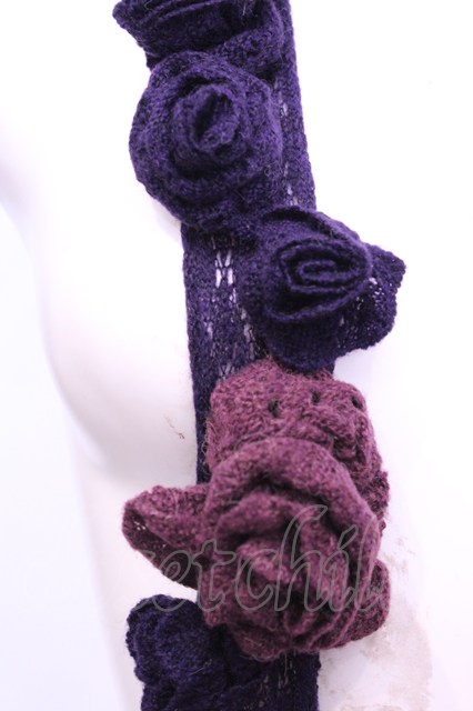 INGEBORG / フラワーニットストール パープル O-25-11-20-1048-LO-ZA-IG-OS