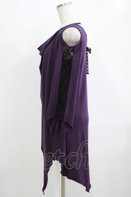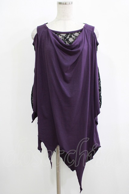 ALGONQUINS / レース切替イレギュラーカットソー 紫×黒 H-25-11-25-034-AL-TO-KB-ZH