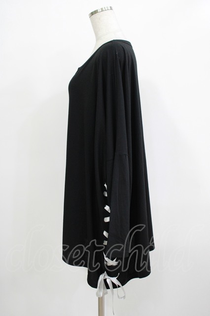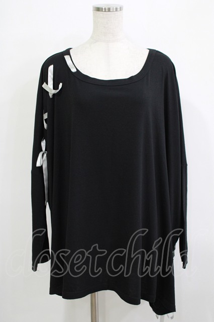 ALGONQUINS / リボン編上BIGカットソー ブラック H-25-11-25-050-AL-TO-KB-ZH [2100030000078909-H-25-11-25-050-AL-TO-KB-ZH]