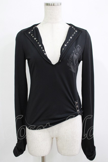 OZZ ANGELO / 裾ギャザーカットソー 黒 H-25-11-25-042-OO-TO-KB-ZH [2100030000078937-H-25-11-25-042-OO-TO-KB-ZH]