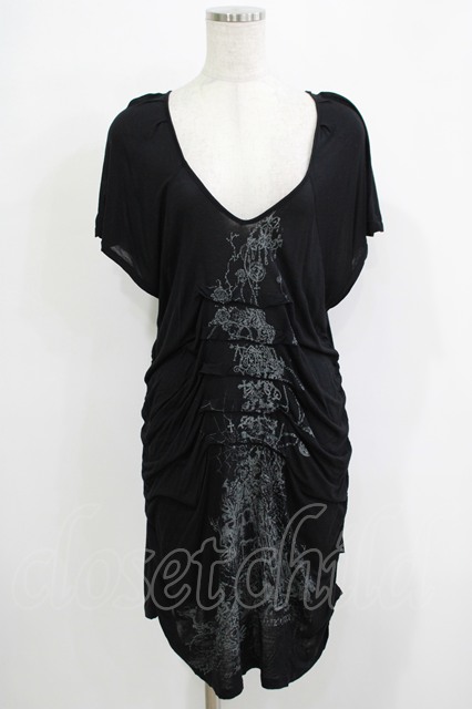 Ozz Croce / プリントタックロングカットソー 黒 H-25-11-25-052-OO-TO-KB-ZH