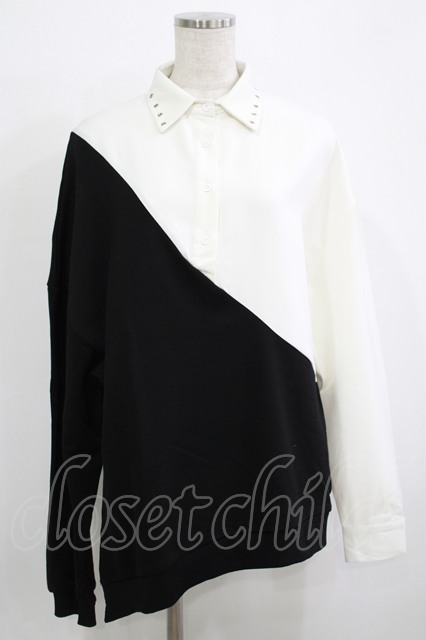 HELL CAT PUNKS / シャツ風プルオーバー F 黒×白 H-25-11-25-027-PU-TO-KB-ZH