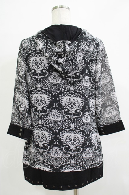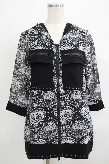 SEX POT ReVeNGe / 総柄シフォン半袖パーカー ブラック H-25-11-25-047-SP-TO-KB-ZT1127J [2100030000078911-H-25-11-25-047-SP-TO-KB-ZT1127J]