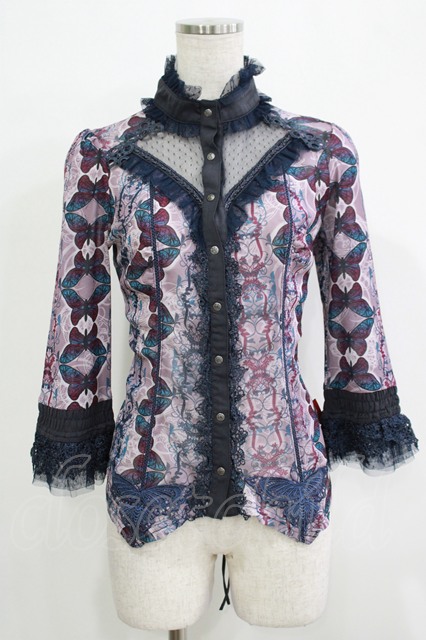 Ozz oneste / プリントメッシュブラウス グレー H-25-11-25-051-OO-BL-KB-ZH